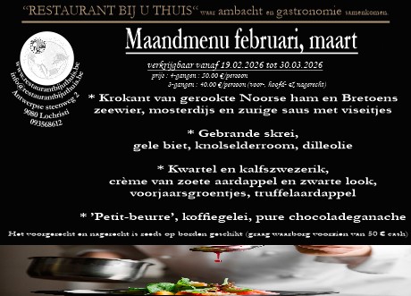 3-gangen : 40.00 €/persoon (voor-, hoofd- & nagerecht)